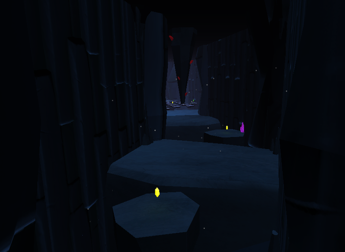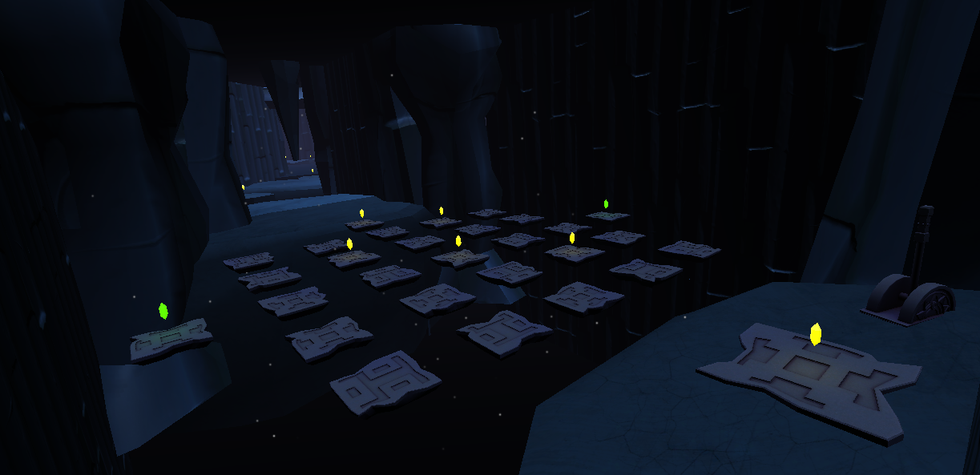 I altered the puzzle's design after we experienced last minute problems with the Blink mechanic's original puzzle, by making it so that once the player lands on specific floating platforms, they would fall. The goal of this puzzle was to step onto a pressure plate on the opposite side of the area, which would move one of the crystals obstructing the end door. Once the pressure plate has been triggered, the camera will cut to the end door as the crystal moves, informing the player that this was the goal and that there was another crystal to move.